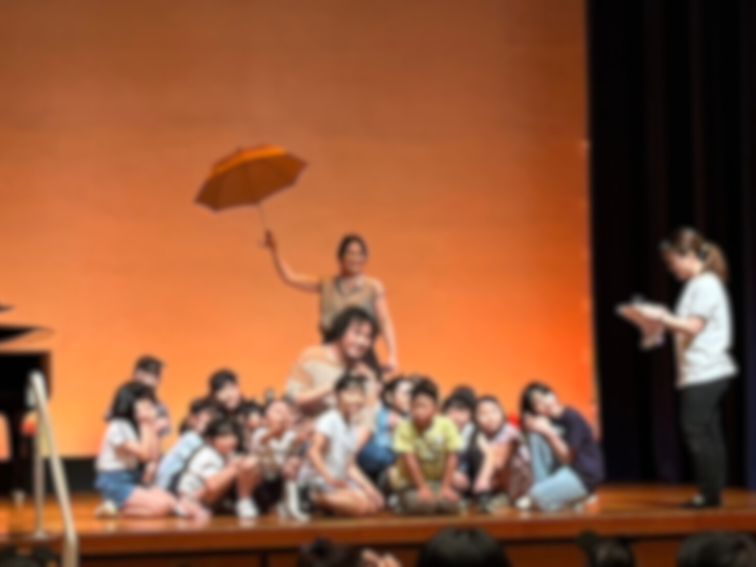 参加者の皆さんが、演出家三浦先生のお話をしっかり集中して聞いてくれました。2時間ほどの短い時間ですが、気持ちを込めて演技、セリフ、歌と踊りを学び、16時からの公演で力を出し切りました‼︎